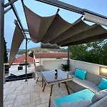 Appartement Bajka comprend une terrasse et un coin salon avec une climatisation pour un plus grand confort. La propriété comprend une toilette séparée et une douche pour votre confort. Un sèche-cheveux et des draps de bain sont accessibles.